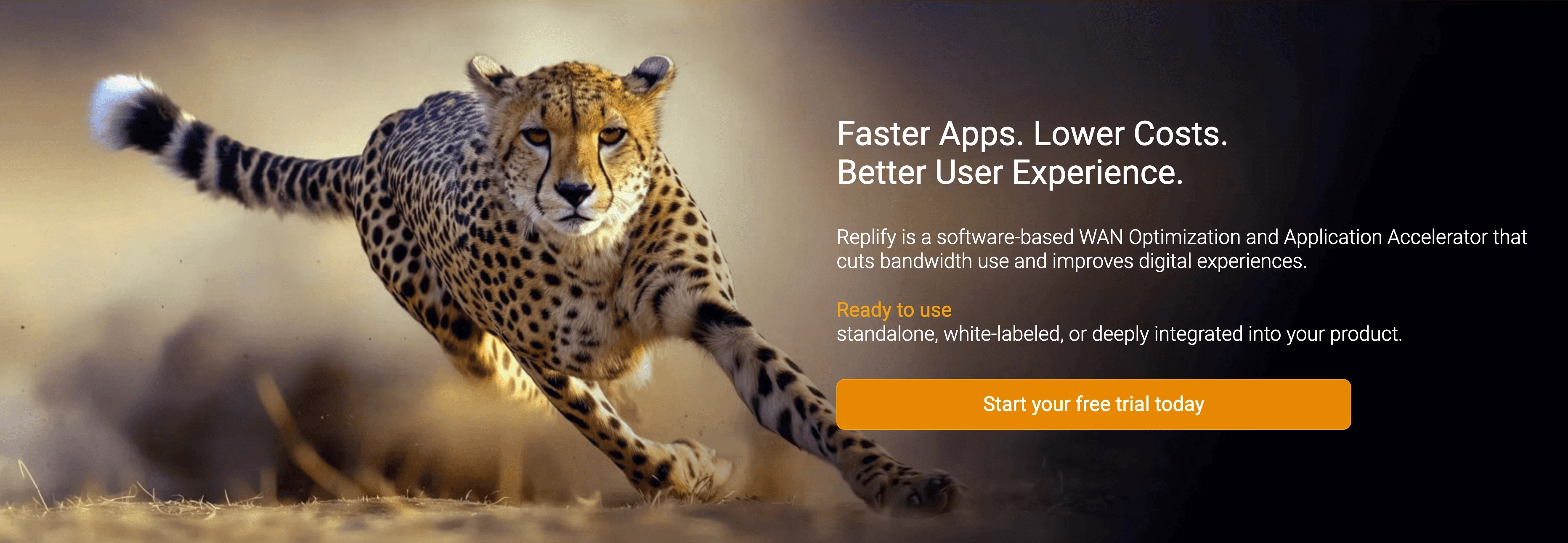 The Replify Accelerator is a software-based WAN Optimization and Application Acceleration product that can be used standalone, white-labeled or deeply integrated into your own product."